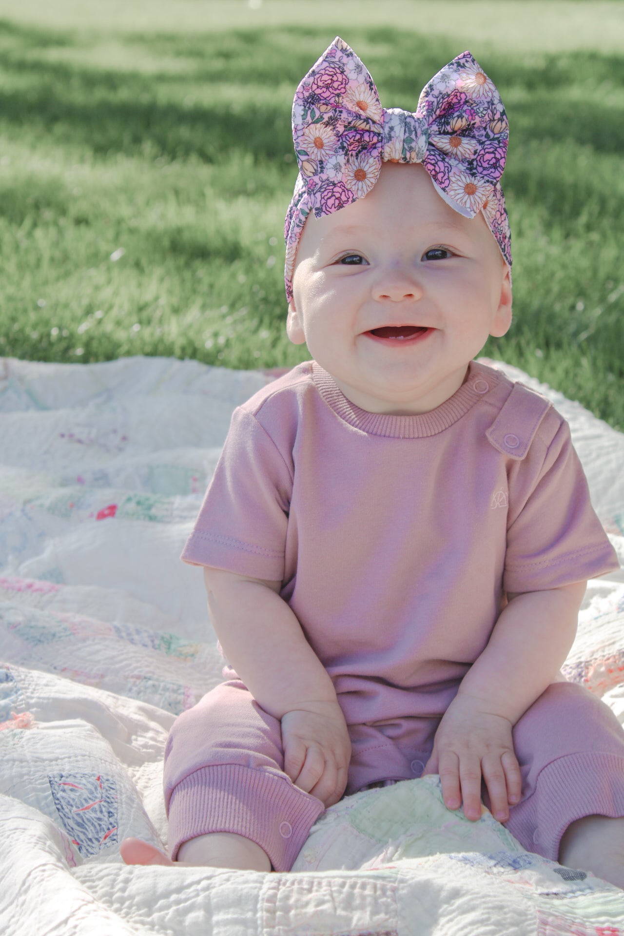 Say hello to the total package with our extra comfy Romper. This Romper comes complete with fashionable ribbed cuffing, heat transfer tags (bye-bye itchy tags), functional snap closures along the legs, and the grand finale- our signature front facing loop. That's right, throw this trendy one piece on your little and allow them to enjoy max comfort along with max function.