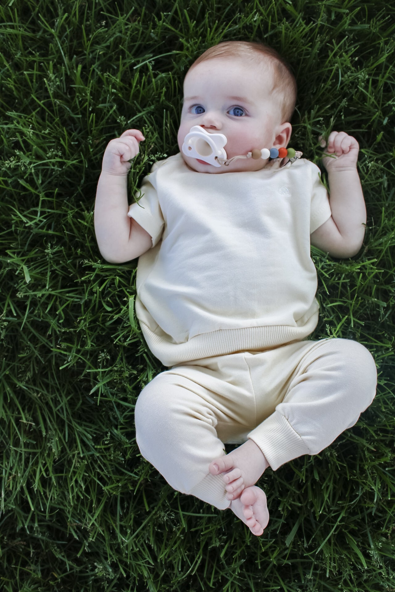 Get ready to keep your child cool and cute in our short sleeve tee! The comfiest t-shirt combined with the built in clip provides top of the line function and is sure to be a staple you will reach for over and over.