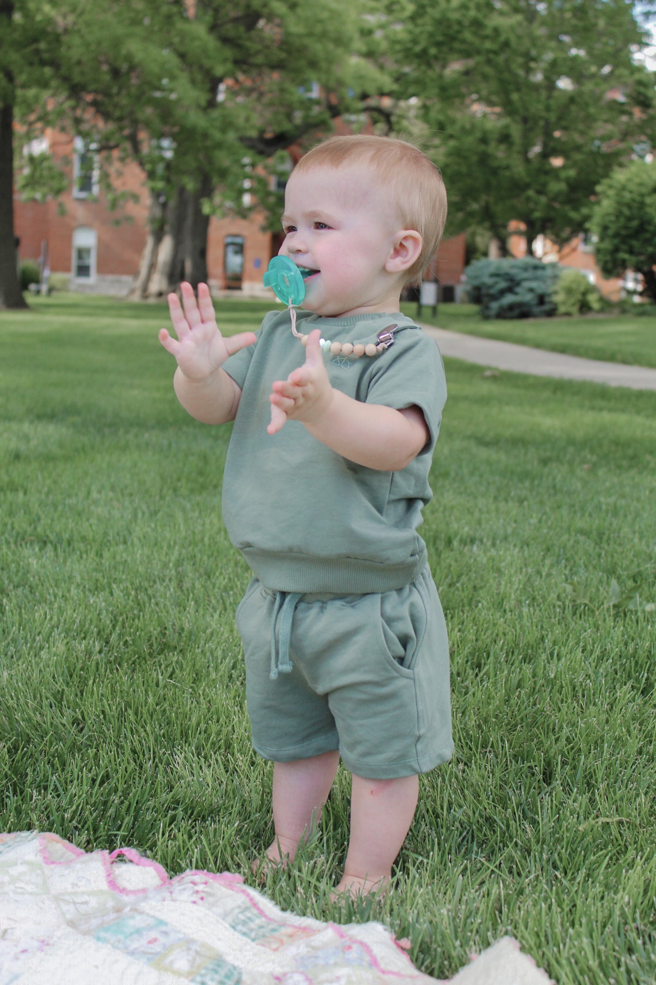 Fashion, meet comfort. These extra cozy shorts are equipped with a functional drawstring and pockets on front and back. These shorts are the perfect piece to style up or down! Pair them with a matching tee and enjoy your little looking put together while being comfy enough to nap in. Simple and classic, just the way we like it.